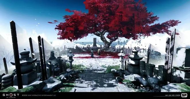 在概念设计阶段就十分注重主题和颜色的使用,为了区别高度写实,加入了大量概念性的几何归纳处理,并开创性融合了东方水墨+电影大师黑泽明的视觉叙事手法,独特的景别的设计,每一帧画面定格,都是一张绝美的壁纸。