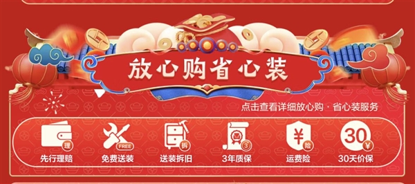 除了诚意满满的商品和价格,京东居家带来的升级服务和权益保障也让消费者能踏实过好年。包括先行理赔、免费送装、送装拆旧、3年质保、运费险、30天价保等在内的京东居家“省心装”服务,完整贯穿居家商品“送、装、退、用、换、养、修”全周期,消费者可以放心下单心仪商品。